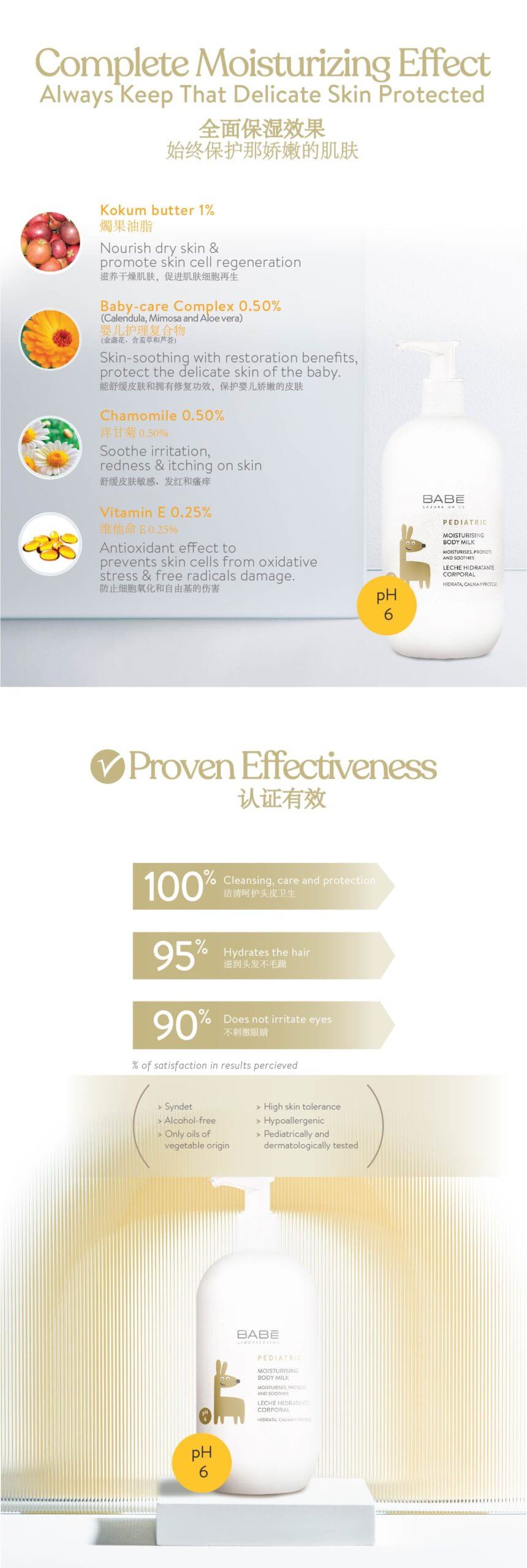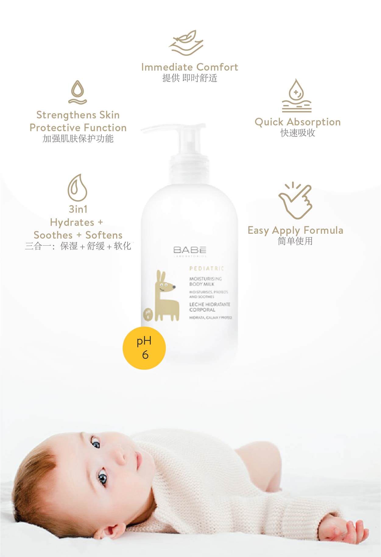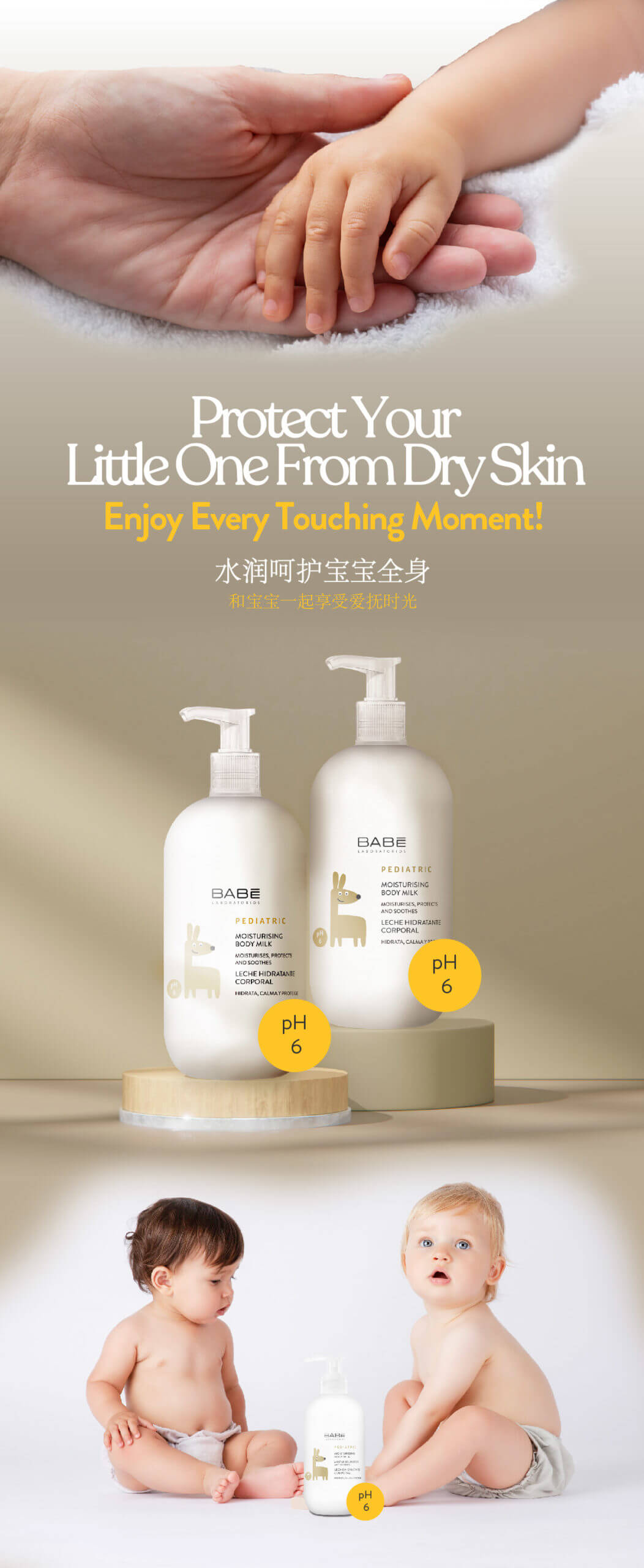 Babe Moisturizing Body Milk is specifically formulated to moisturize and nourish the gentle skin of babies and children.