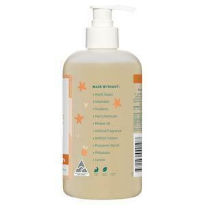 Made with organic sweet orange, a natural and gentle antibacterial cleanser, organic evening primrose oil to nourish and soften skin and organic chamomile to calm and soothe.