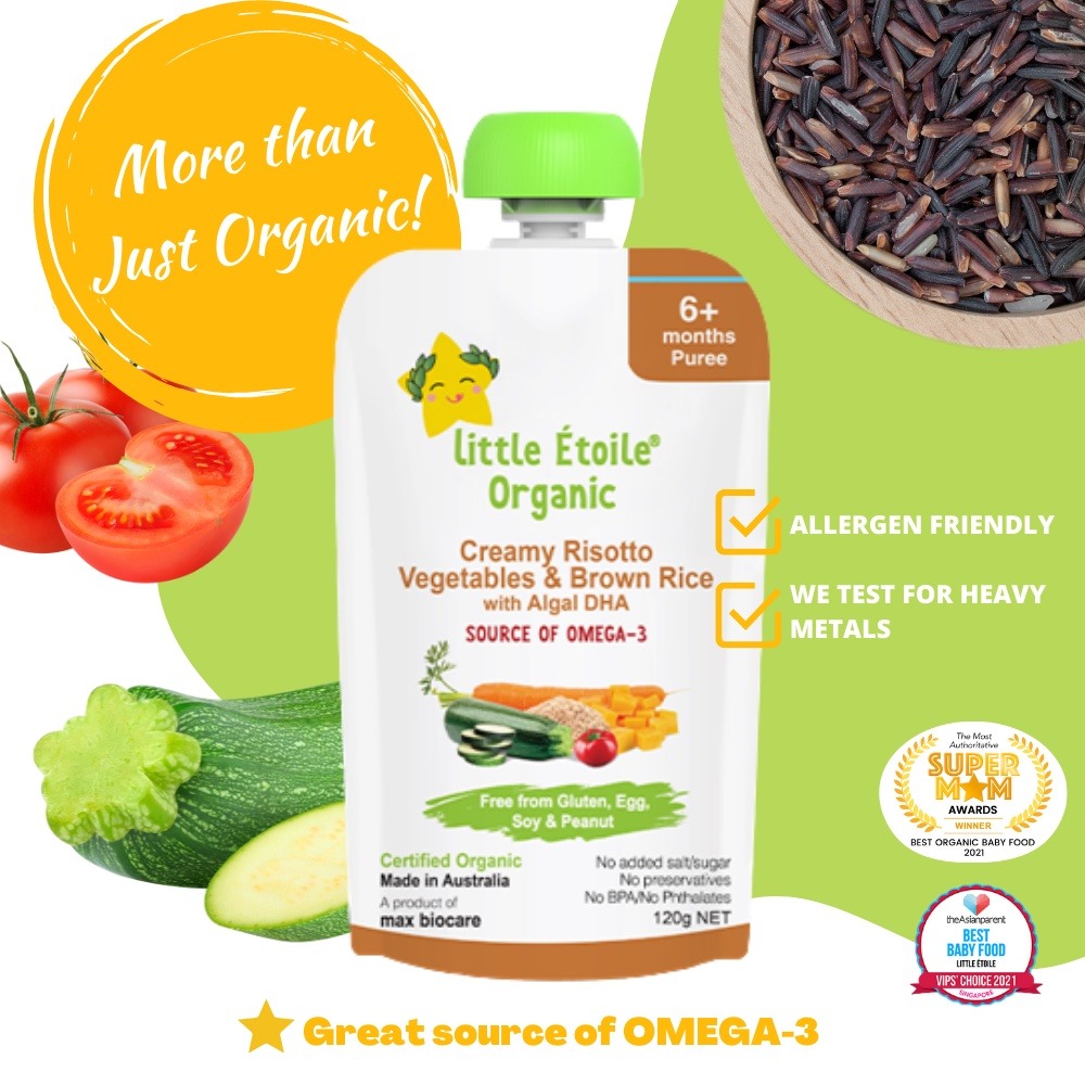 – Little Étoile Organic® is the ONLY baby food pouch on the market claims testing on 8* most common allergens.