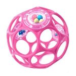 What’s got baby all shook up? The easy, squeezy Oball Rattle by Bright Starts! Designed to be easy to grasp for even the littlest fingers, this baby toy encourages the development of fine motor skills with every shake. There are 29 total finger holes, so even inexperienced fingers can hold on tight and shake with everything they’ve got! Your baby will love watching the bright beads inside each rattle clickity-clack with every shimmy and shake. Toss these award-winning ball rattles into your diaper bag and keep them on hand wherever you go. Your little noisemaker will always have a ball!